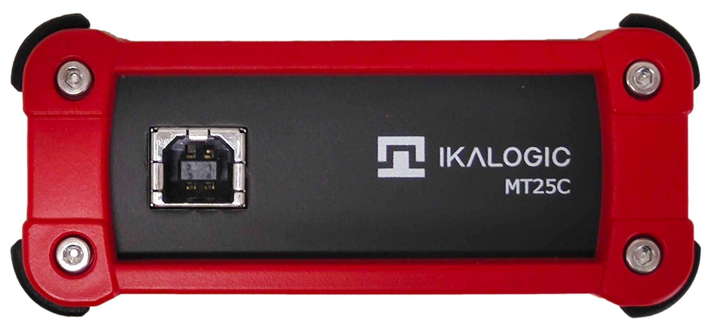 MT25C connects to the host PC via USB and appears as a standard virtual COM port. The test interface itself is a DB 25 connector designed to handle customizable digital and analog I/O. No proprietary hardware interface or adapter is needed—just a USB cable and your preferred connection to the keypad under test.